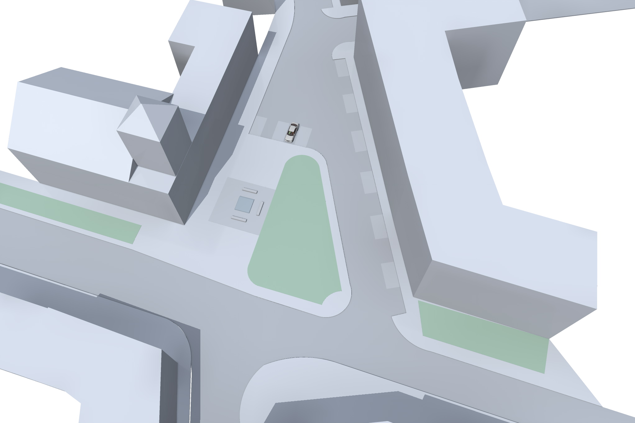Úprava uličního prostoru Charvatská/Svatopluka Čecha připojuje současný parčík gen. Knorra a vytváří klidové místo před vstupem do kostela a divadla.